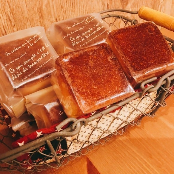 ボン・ムーのレモンキューブケーキは、きれいなキューブ形で見た目もかわいい焼き菓子です。お手に取っていただくと、どっしりと重みがあり充分な食べ応えがあります。