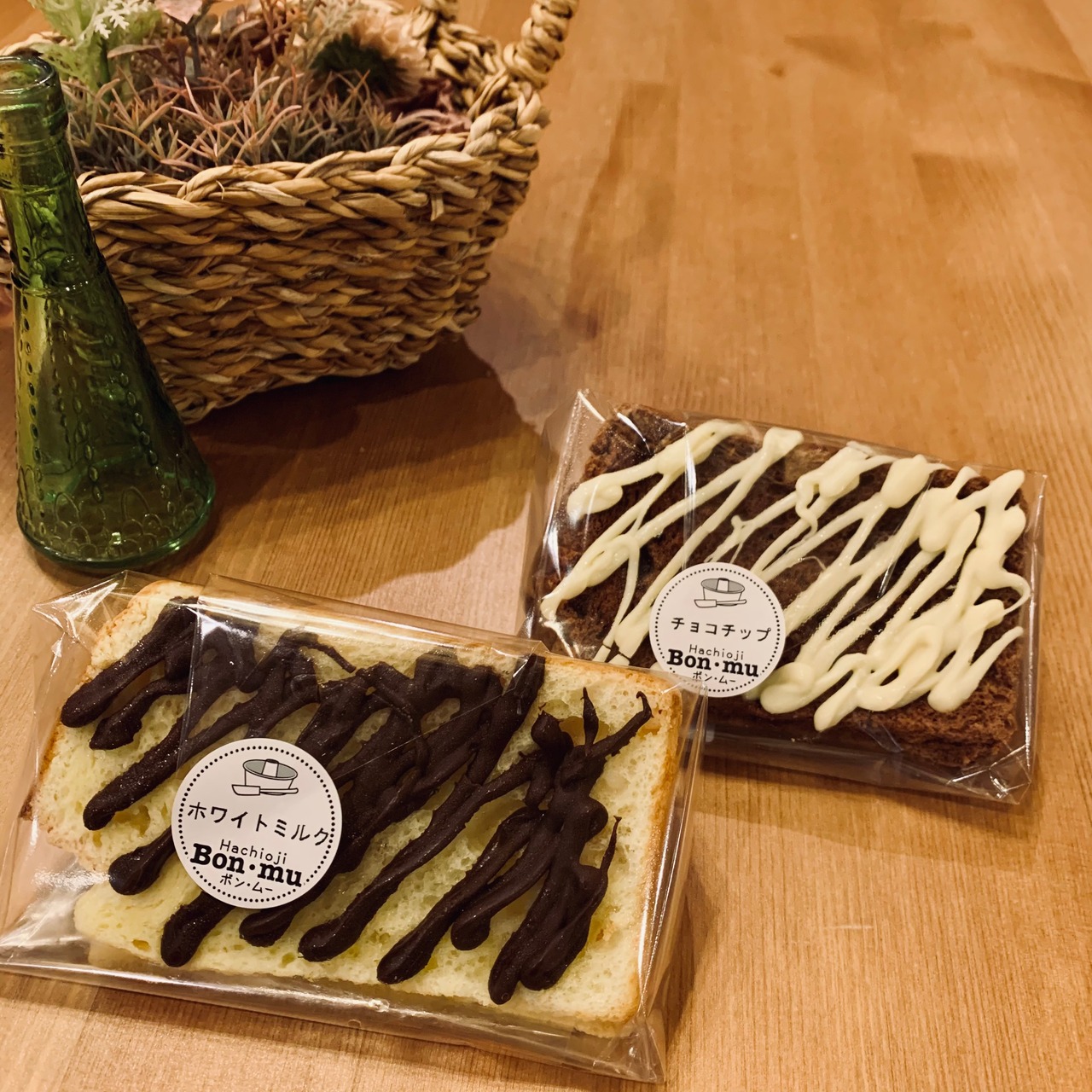 バレンタイン限定で、人気のシフォンに2種類のチョコレートをかけました。
